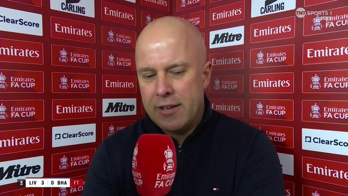 虎扑02月15日讯利物浦主教练斯洛特在3-0击败布莱顿的足总杯赛后,接受BBCSport采访。